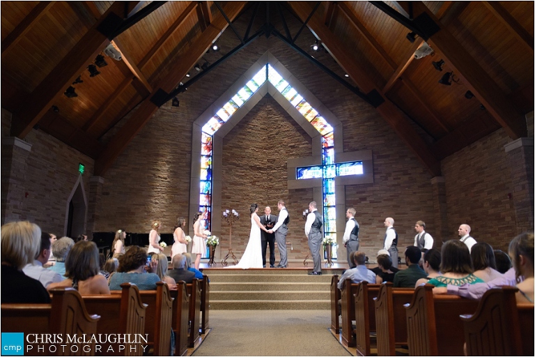Sarah, the stunning bride, and her new husband Chad were married on a gorgeous June day in the chapel at Cherry Hills Community Church. The ceremony was beautiful and perfectly captured the depth of love that these two share. You just can’t help but be happy when around Sarah and Chad… especially with Sarah’s contagious smile. 🙂